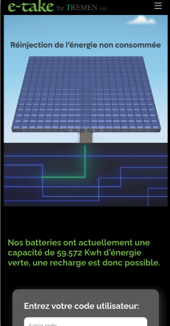 Le logiciel MyIziliamm de TREMEN permet à notre équipe technique de gérer et de monitorer l'interface de l'application, la sécurisation des accès à la recharge et de contrôler la production d'énergie des générateurs solaires ainsi que le stockage d'énergie.